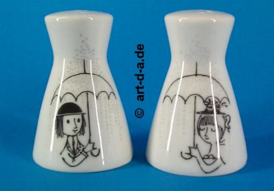 Rosenthal Salz- u. Pfefferstreuer Form 2000 Dekorentwurf v. R. Peynet Formentwurf v. R. Loewy Ausformung von 1966 Höhe ca. 5,5 cm